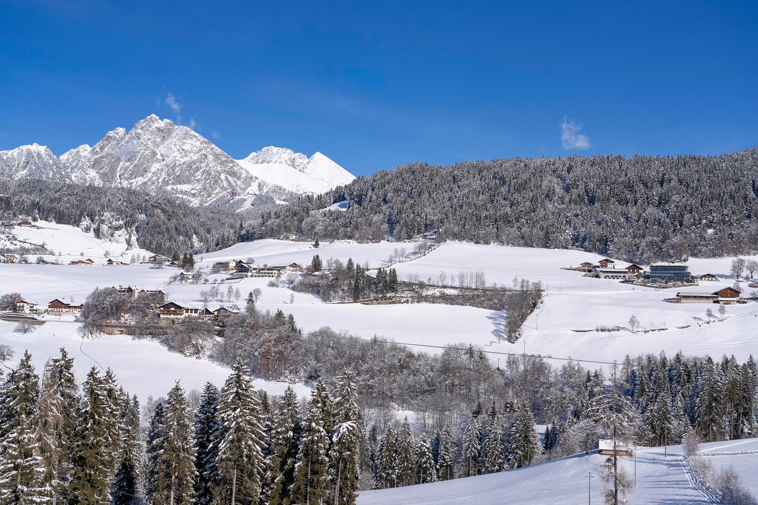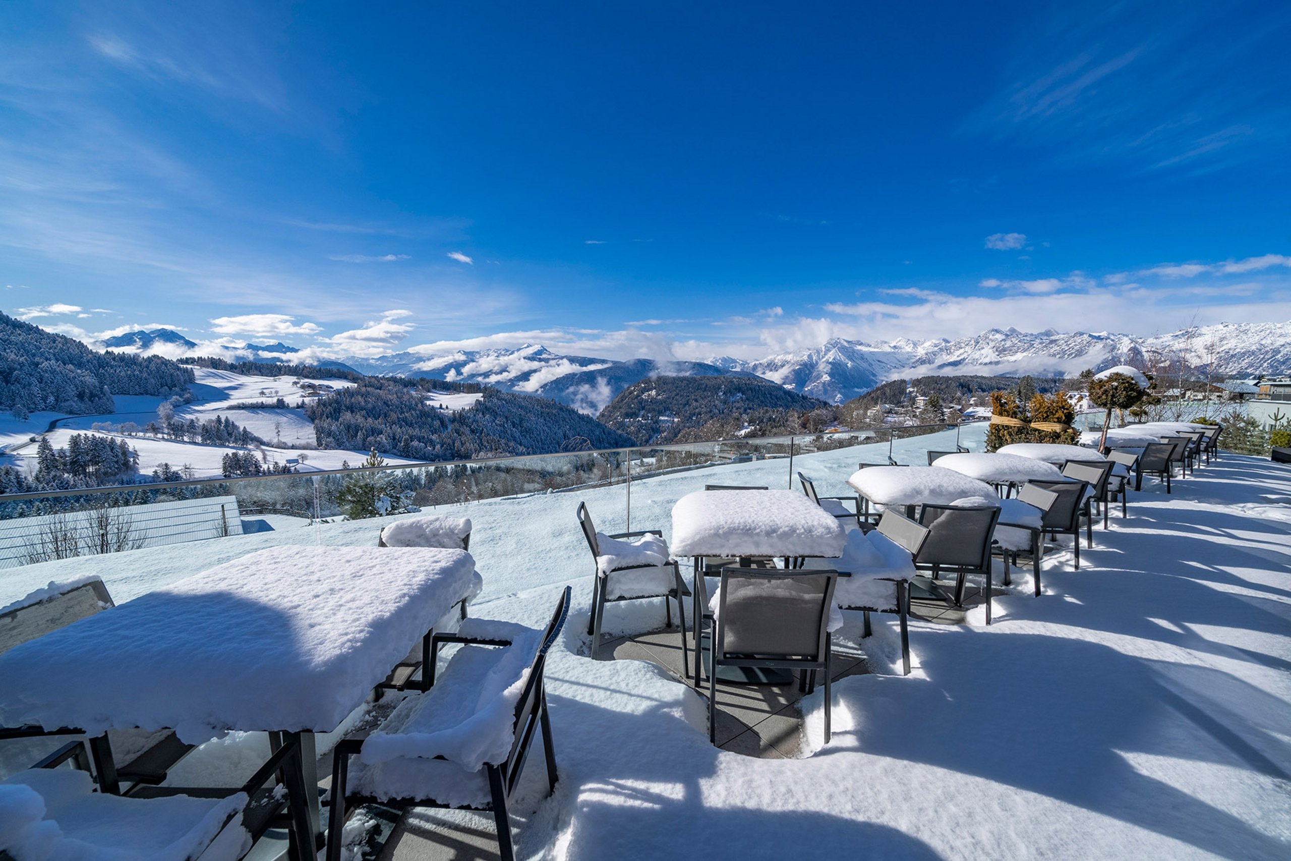 Frische Bergluft einatmen und die herrliche Aussichten im Winter genießen.